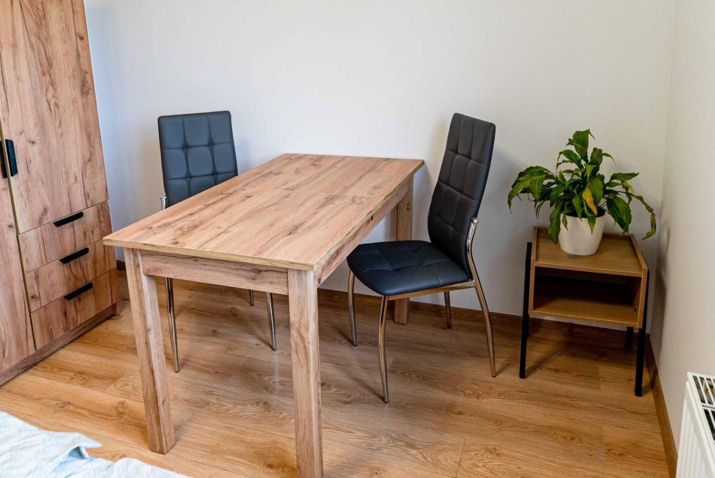 Mały pokój Dwuosobowy. Offering a dining area, a wardrobe and heating, this double room includes a shared bathroom. Featuring a terrace with garden views, this double room also offers a tea and coffee maker and a flat-screen TV. The unit offers 1 bed. Pokój Dwuosobowy - 2 osobowy. Powierzchnia pokoju ok.: 20 mkw.