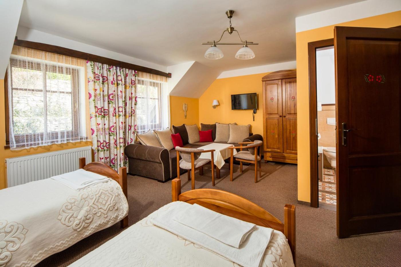 Dwupoziomowy pokój czteroosobowy. The quadruple room includes a private bathroom fitted with a shower. The quadruple room features a flat-screen TV, a wardrobe, a carpeted floor, heating as well as garden views. The unit has 4 beds. Pokój Czteroosobowy - 4 osobowy. Powierzchnia pokoju ok.: 30 mkw.